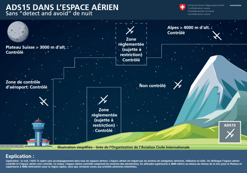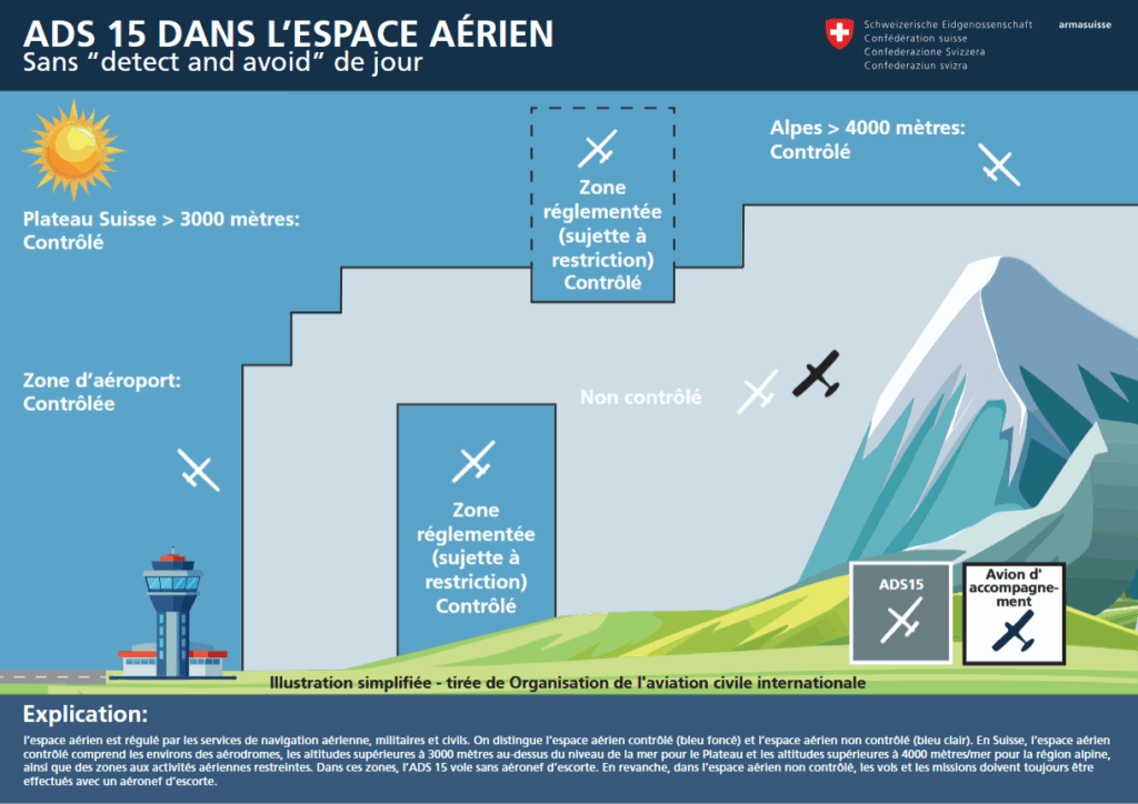 Rapport sur les projets du DDPS – Projet ADS 15 – Drones de reconnaissance : https://www.vbs.admin.ch/fr/projet-ads15-drones-reconnaissance